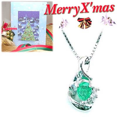 クリスマス限定商品今ならラッピング無料◆クリスマス限定Xmasカード付( 5月誕生石 ) K18ホワイトゴールド エメラルドペンダントネックレス【SUEHIRO】