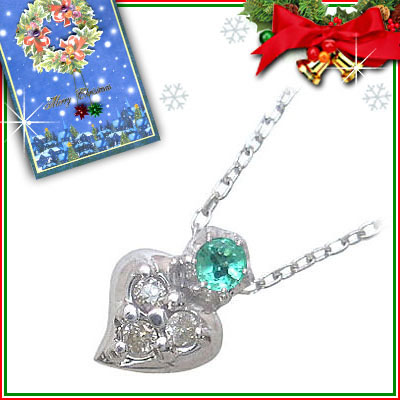 クリスマス限定商品今ならラッピング無料◆クリスマス限定Xmasカード付( 5月誕生石 ) K10ホワイトゴールド エメラルドペンダントネックレス(ハートモチーフ)★送料無料【SUEHIRO】