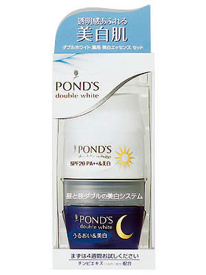 ポンズダブルホワイト 薬用美白エッセンスセット 昼用・夜用 お肌表面の明るさと、お肌内側のうるおいの両方をケアする薬用美白美容液です。【日用品屋】ポンズダブルホワイト 薬用美白エッセンスセット 昼用・
